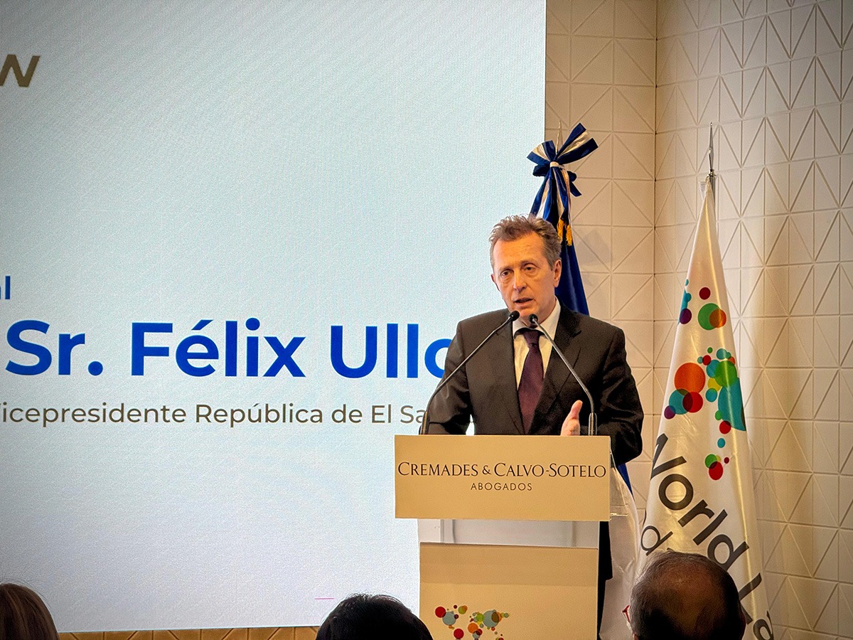 El auditorio de la World Law Foundation en Madrid ha acogido este martes la conferencia Estado de derecho, Seguridad y Derechos Humanos: respuestas jurídicas a la violencia en sociedades democráticas. El caso de El Salvador en diálogo con los estándares internacionales, un acto que ha reunido a embajadores, juristas, representantes institucionales y miembros del ámbito académico para analizar el modelo salvadoreño frente a la violencia de las pandillas. La sesión ha contado con la presencia del vicepresidente de El Salvador, Félix Ulloa, acompañado por diplomáticos de distintos países. También ha estado presente, el presidente de la World Jurist Association, Javier Cremades, quien ha anticipado que el acto iba a ser «de alto voltaje».