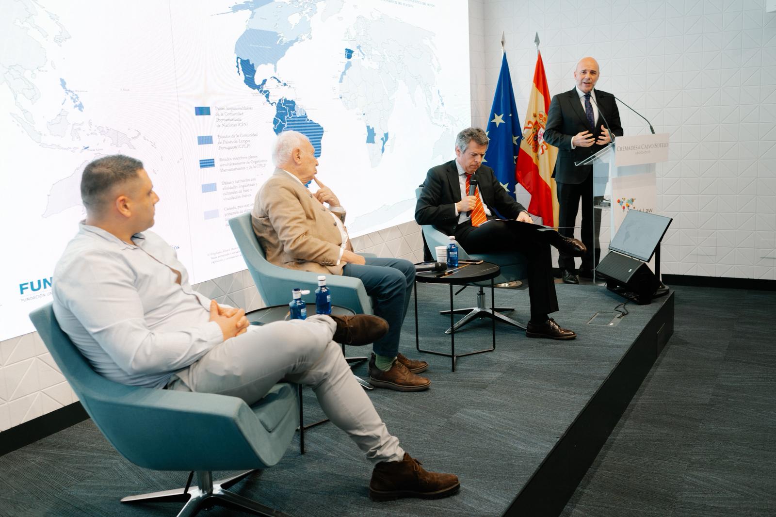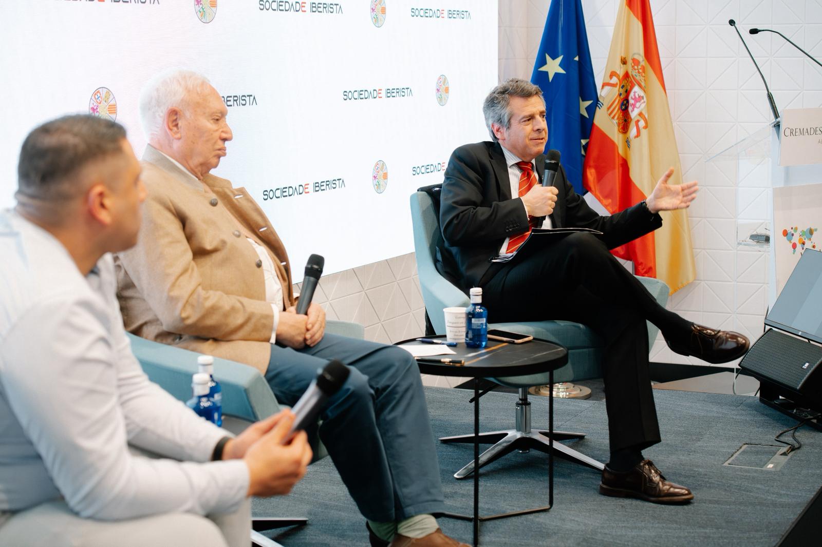 El eje central de la jornada fue el coloquio con el exministro de Asuntos Exteriores, José Manuel García-Margallo, con una dilatada trayectoria en la política internacional, conducido por Rafael García Millán, abogado y socio del despacho anfitrión, y con la participación de Adrián Gebé, coordinador general de la Sociedad Iberista.