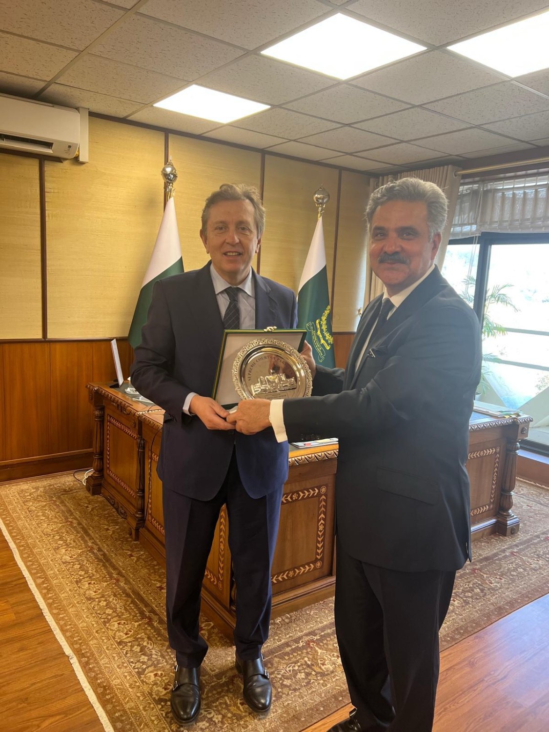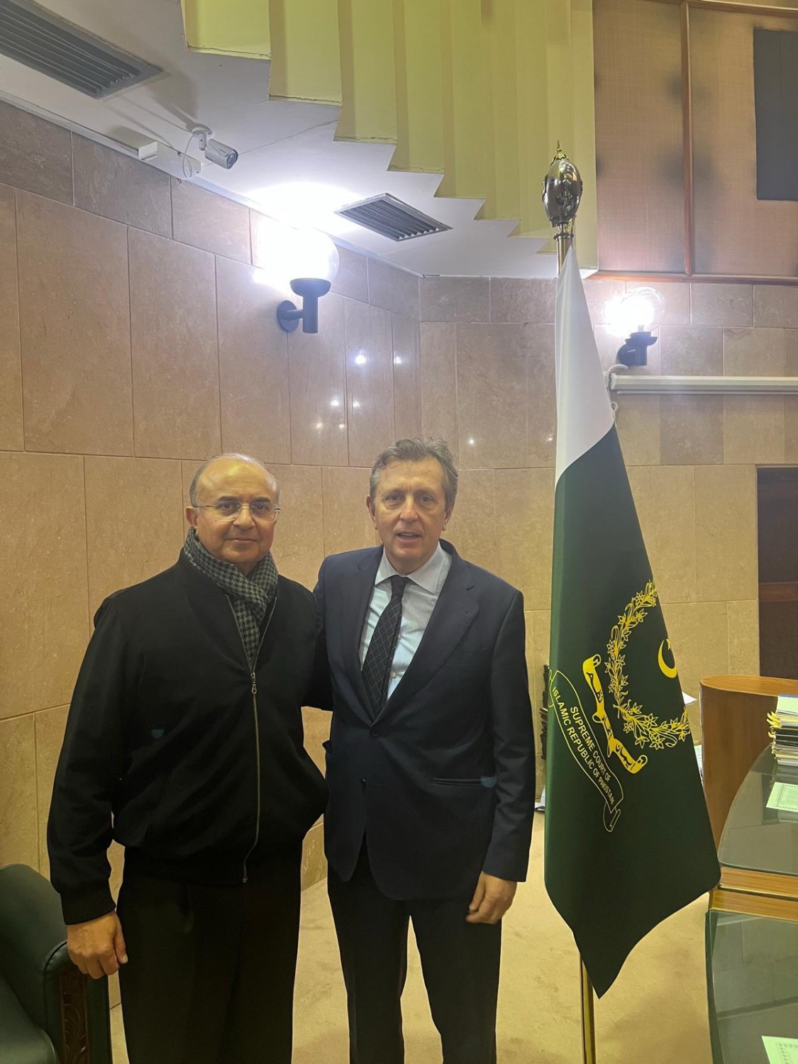 Los tres magistrados del Tribunal Supremo (Supreme Court) con los que me encontré representan a una excelente generación de juristas: Qazi Faez Isa (con quien me reuní gracias a los buenos oficios del Embajador de España en el país, José Antonio de Ory —que gozaba y mantiene unas relaciones especialmente destacadas en la sociedad política y jurídica de Islamabad—), Justice (R) Syed Mansoor Ali Shah, en ese momento vicepresidente del Tribunal —a quien conocí en el WLC de Nueva York, y quien posteriormente me visitó en Madrid—, y Yahya Afridi, recién elegido entonces nuevo Presidente del Tribunal Supremo.